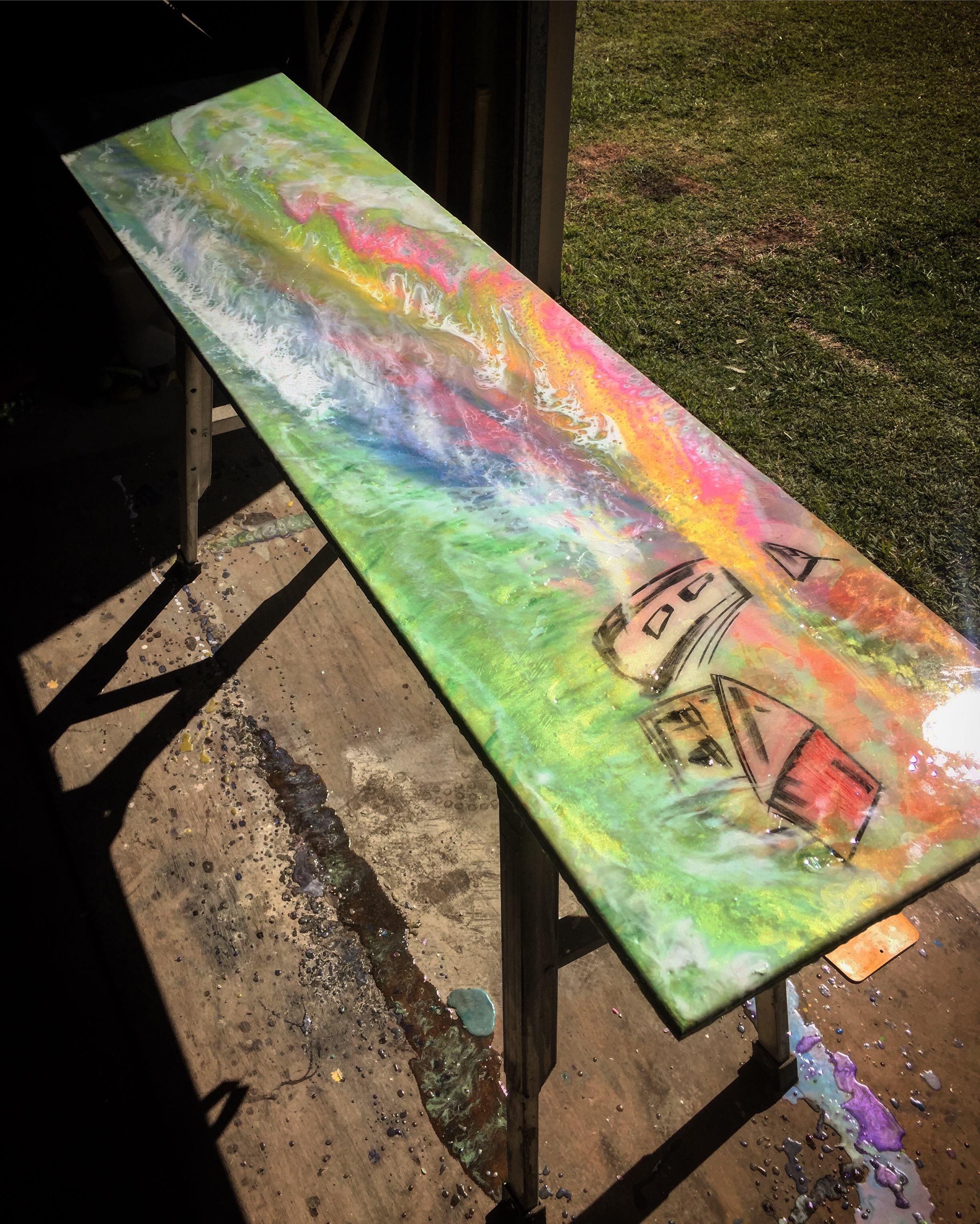 My work moves between two directions: structured expressive faces and fluid abstract energy. The face works are bold and direct. The ocean and texture pieces are more instinctive, layered, and physical.